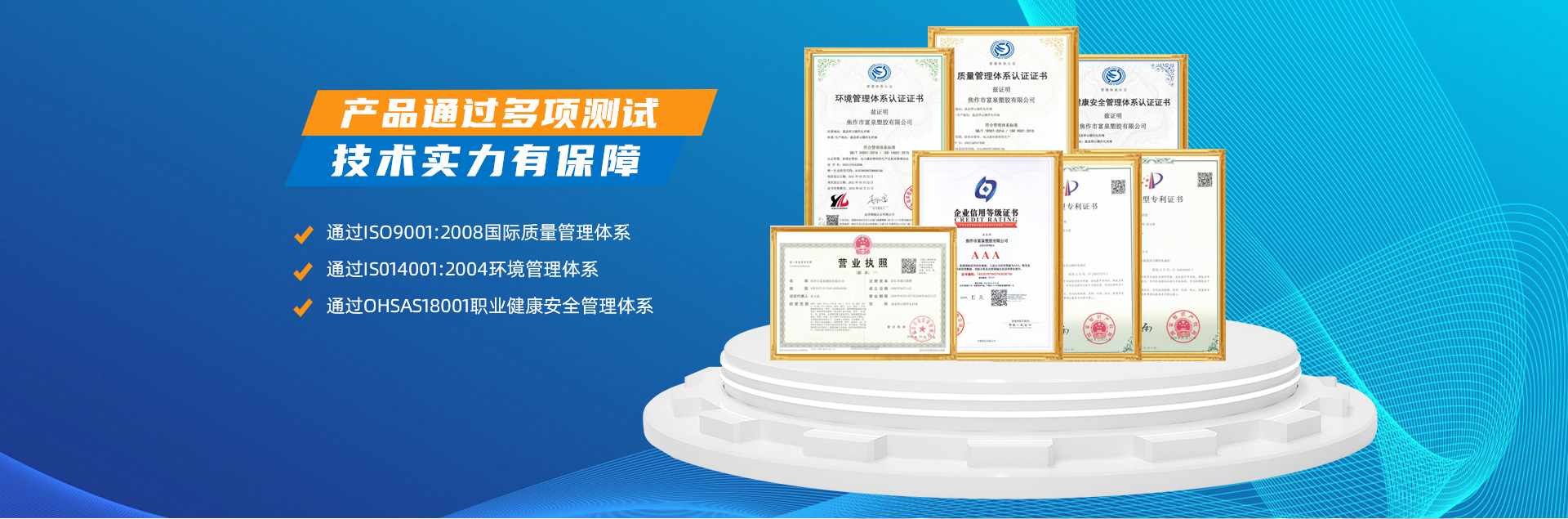 - 焦作市富泉塑胶有限公司,创立于1995年,是一家集研发、设计、生产、销售为一体的大型管材企业。公司位于太极故里、黄河之滨一一河南焦作温县。公司占地128亩,现有职工210余人,其中具有中技术职称的19人。生产、检验设备58台(套),包括PVC实壁管生产线11套、PE实壁管生产线12套、HDPE双壁波纹管生产线6套、PVC双壁波纹管生产线5套,检验设备14台(套)。主要产品有:Φ20mm-630mm、各种压力规格的PVCU、PVC-M、PE给水管材,PVC-U节水灌溉管材,HDPE燃气和矿用管材,DN200-800mm的HDPE、PVC双壁波纹管及各种喷灌、滴灌工程材料。承接大中型市政供排水、饮水安全及节水灌溉等工程。 富泉塑胶公司重视产品的质量、安全、环保和节能,在同行业中率先完成了“新华节水产品认证”,全方面通过ISO9001:2008国际质量管理体系、IS014001:2004环境管理体系和OHSAS18001职业健康安全管理体系的一体化导入,并建立起规范的现代企业管理体系。公司以“质量”为先导,采用质量跟踪、多环节把关的方法,组建具有行业水准的企业技术检测中心,常年委托水利部节水灌溉设备检测中心、河南省产品质量监督检验院对产品跟踪检测,并由中国人民保险公司承保产品质量。公司连续多年被河南省水利厅确定为“安全饮水设备、节水灌溉设备”定点生产企业,并获得“中国名优产品”“质量、服务、信誉AAA企业”“河南省**产品”“河南省水利企业”“河南省守合同、重信用企业”等荣誉称号?! 「蝗芙汗炯岢帧坝没稀钡姆窭砟?,长期以来,全方面关注客户价值,不断提升服务水平。服务队伍常年为客户的产品设计、施工、安装提供合理的方案和全程细致、周到、**、快捷的技术服务。公司自成立以来,一直坚持以人为本的宗旨,塑造企业形象,并致力于新产品的开发,凭借雄厚的技术开发能力,先进的工艺制造流程,严格的质量管理保证体系,优良的售后服务网络,已成为河南省大的饮水、灌溉及排水管材设备制造商。产品畅销全国,而且还以公司雄厚的综合实力在业界中占据着重要的地位。